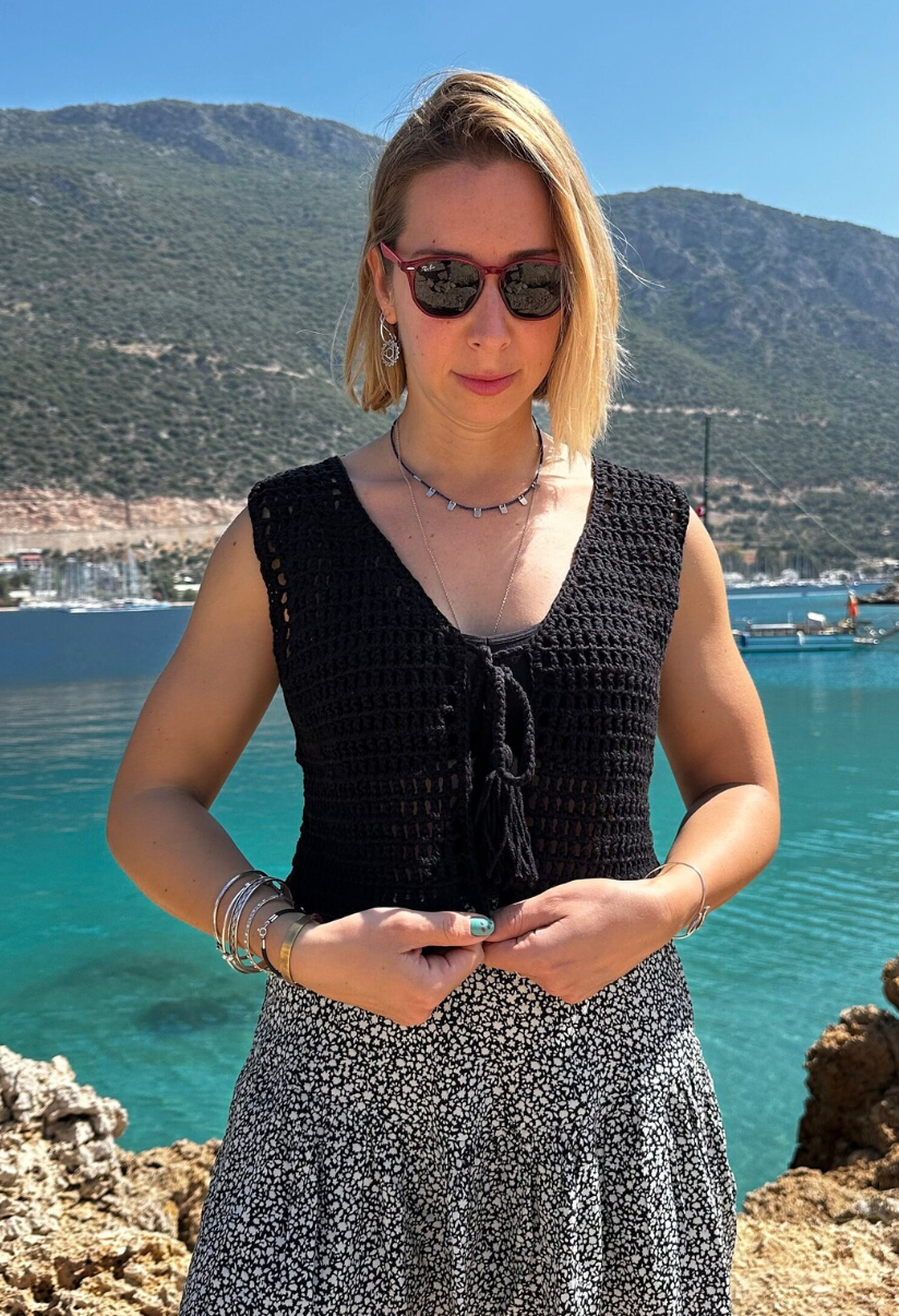 Black Color Mesh Crochet Tops, Summer Festival Top, Knit Vest Top, Vegan Crop