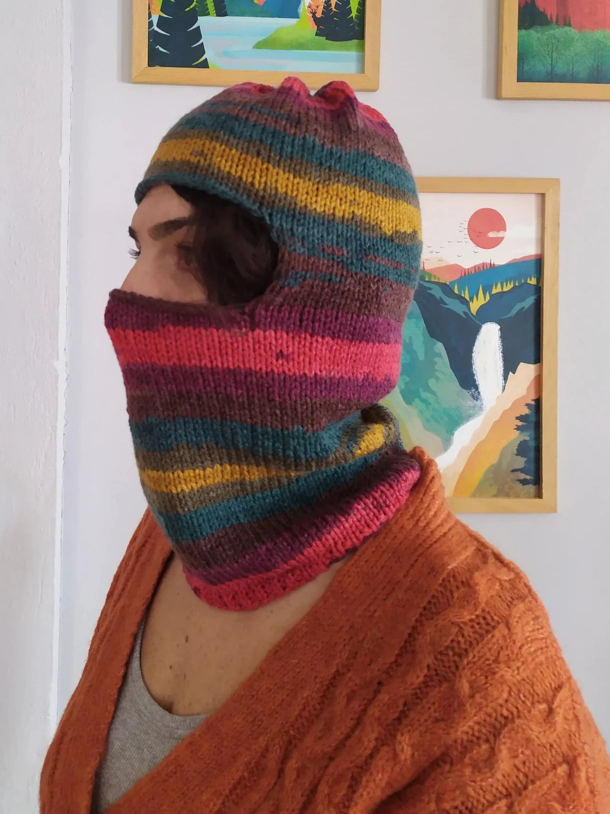 Colorful Balaclava, Knit Winter Hats, Knitted Balaclava Beanie, Elastic Braided Balaclava Head, Crochet Ski Mask, Handknit Balaclava