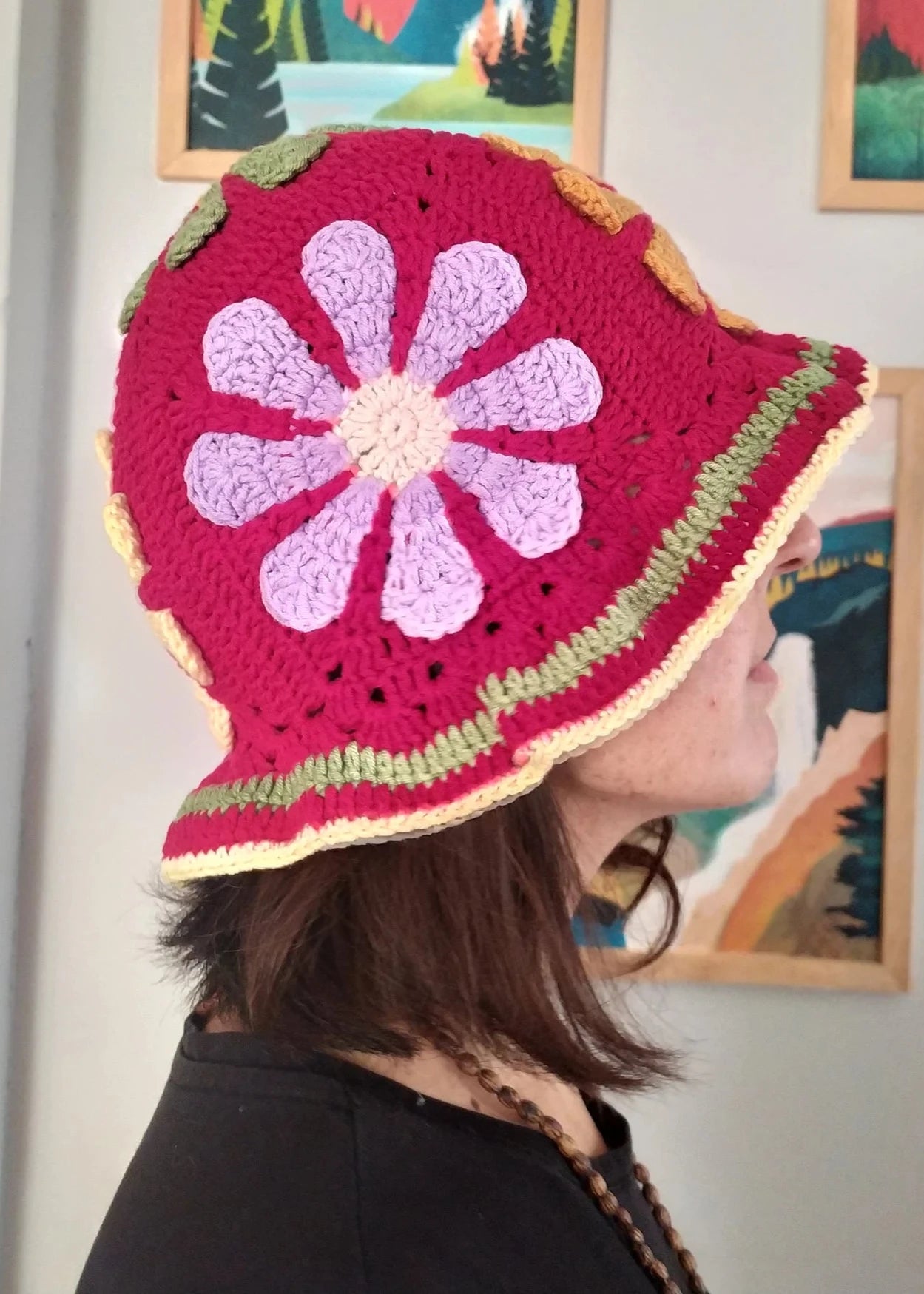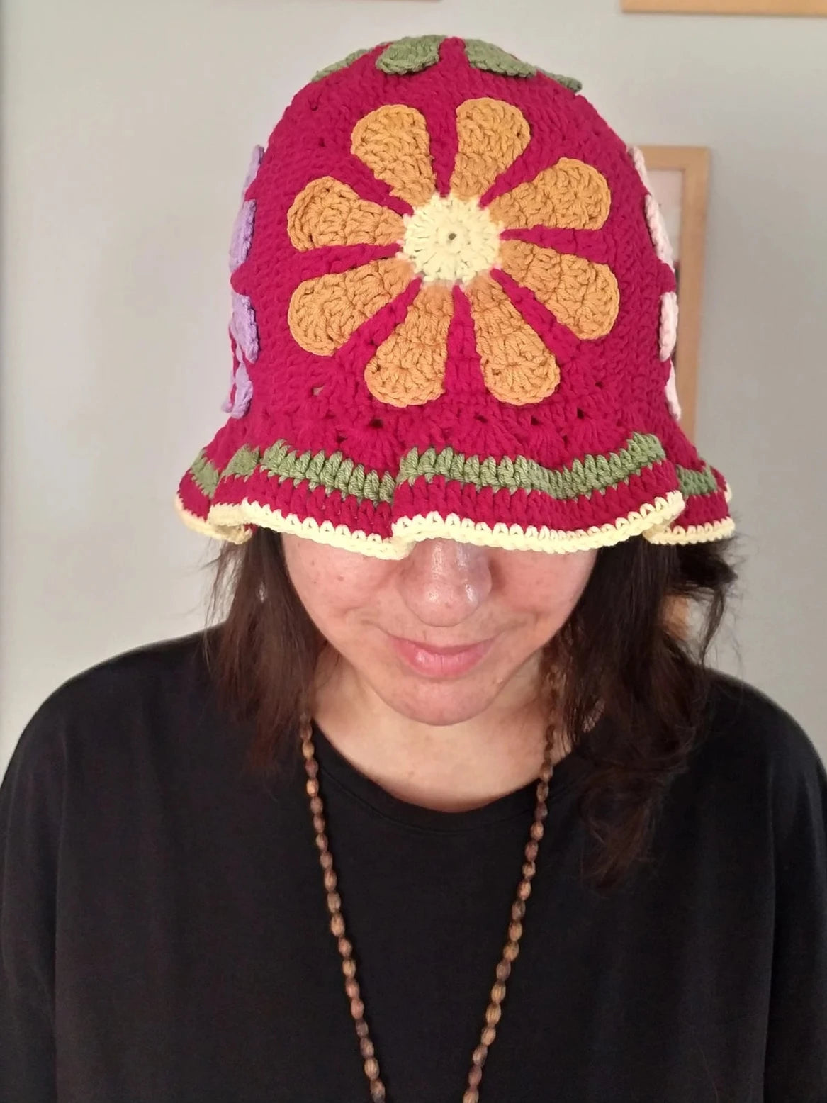 This knitted crochet daisy motif bucket hat is for you. In festivals, concerts, on the streets, in short, wherever there is life, all people will watch you.