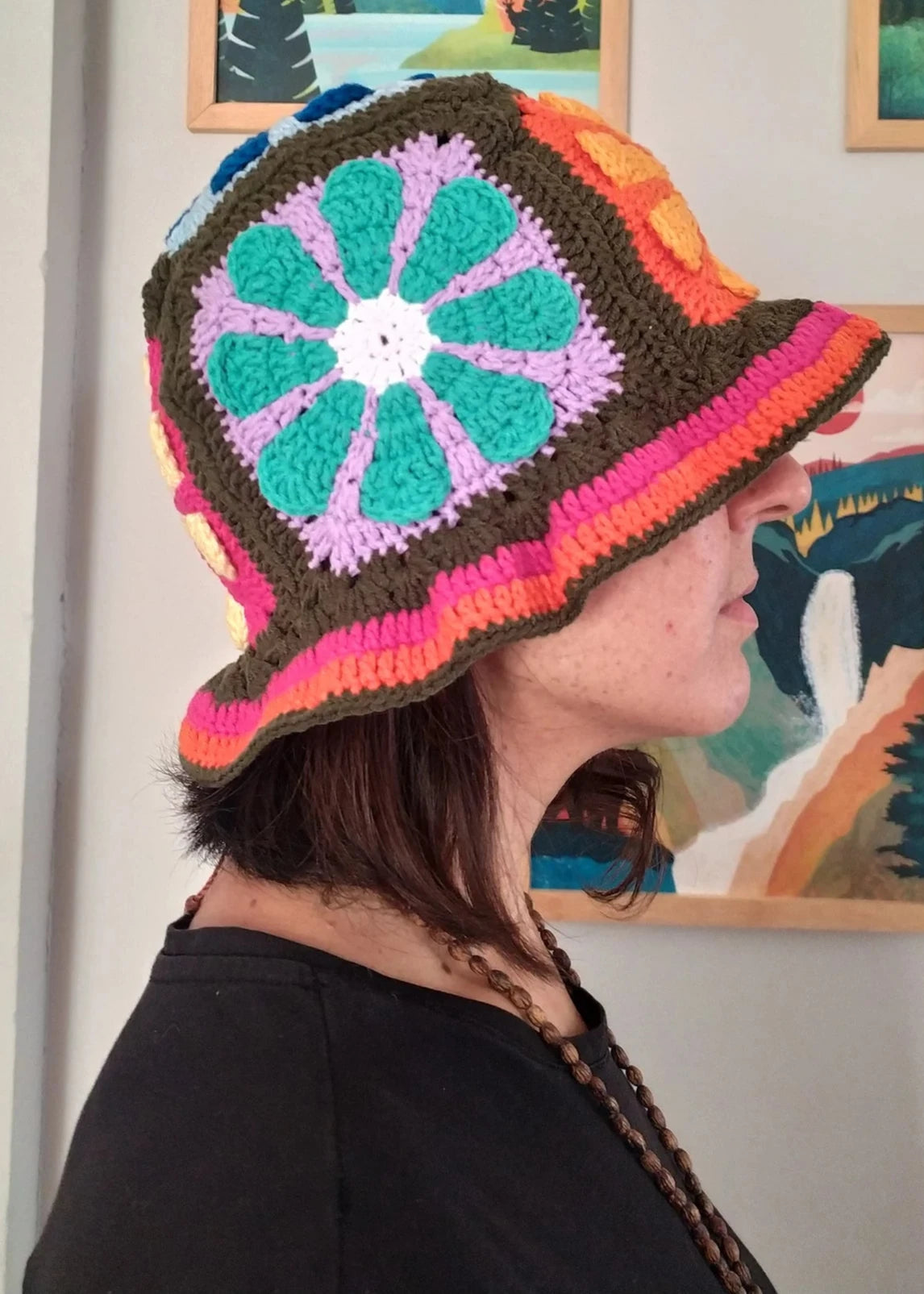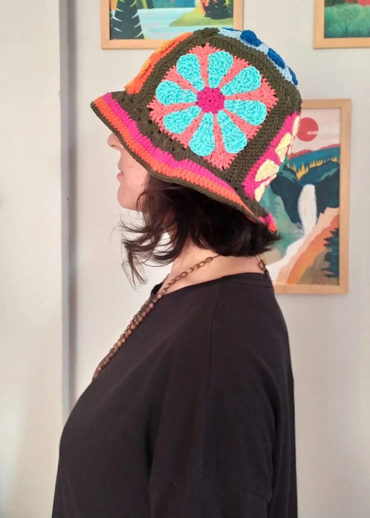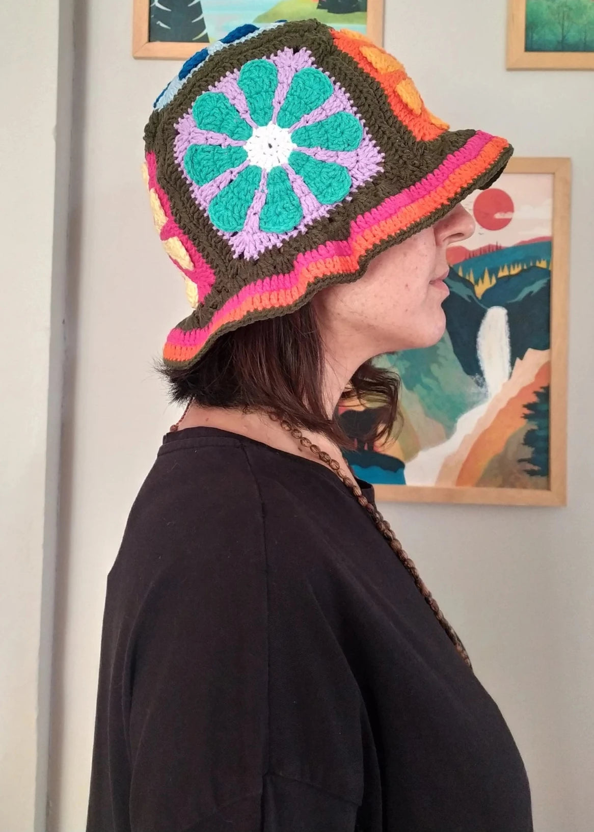 Crochet daisy hat, Crochet bucket hat, Knit flower, Festival hat, Hippi hat, Crochet hat, Summer Knitted hat, Christmas gift for her