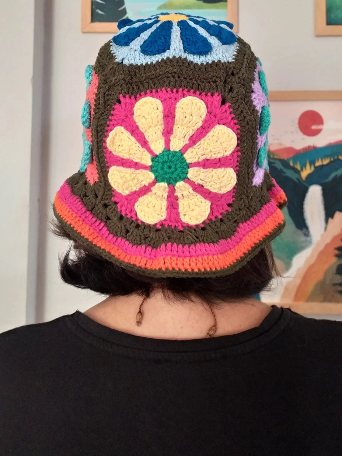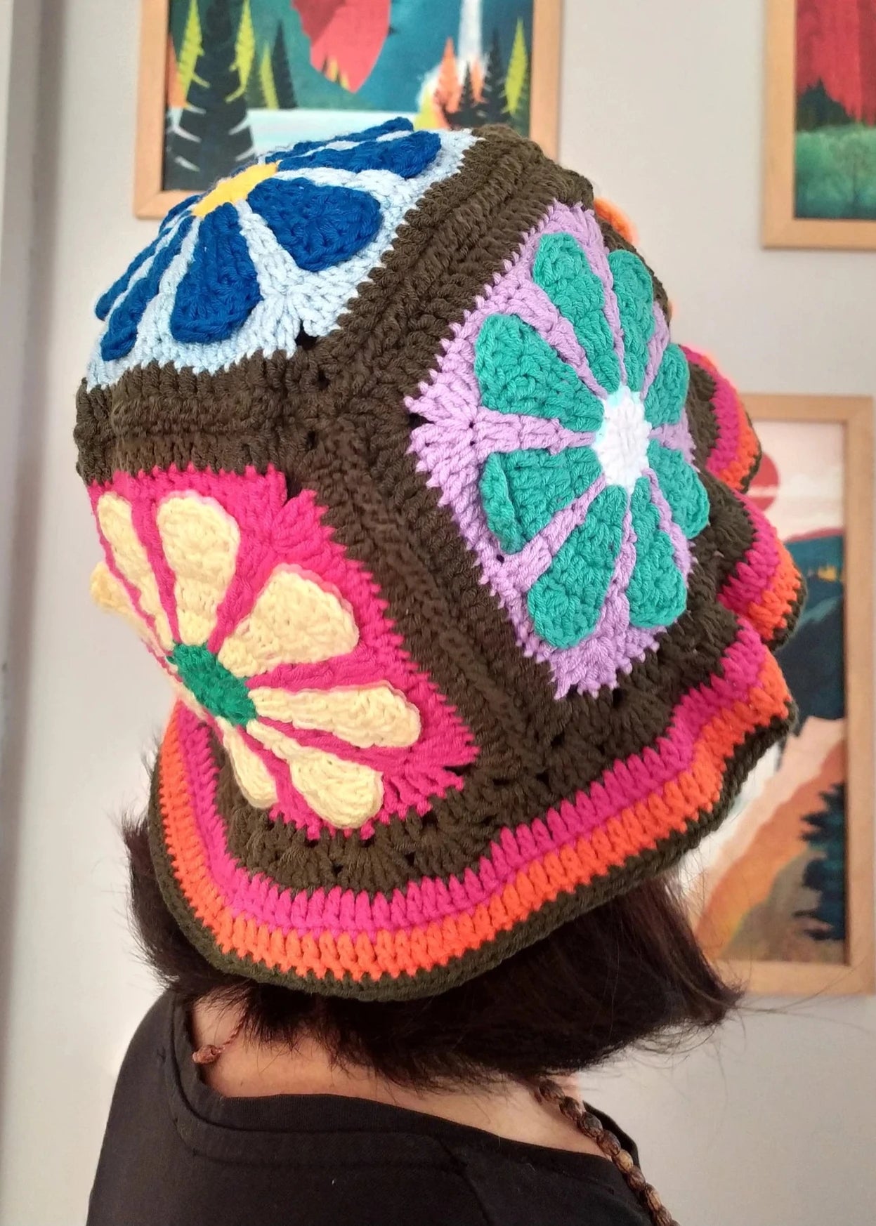 This knitted crochet daisy motif bucket hat is for you. In festivals, concerts, on the streets, in short, wherever there is life, all people will watch you.