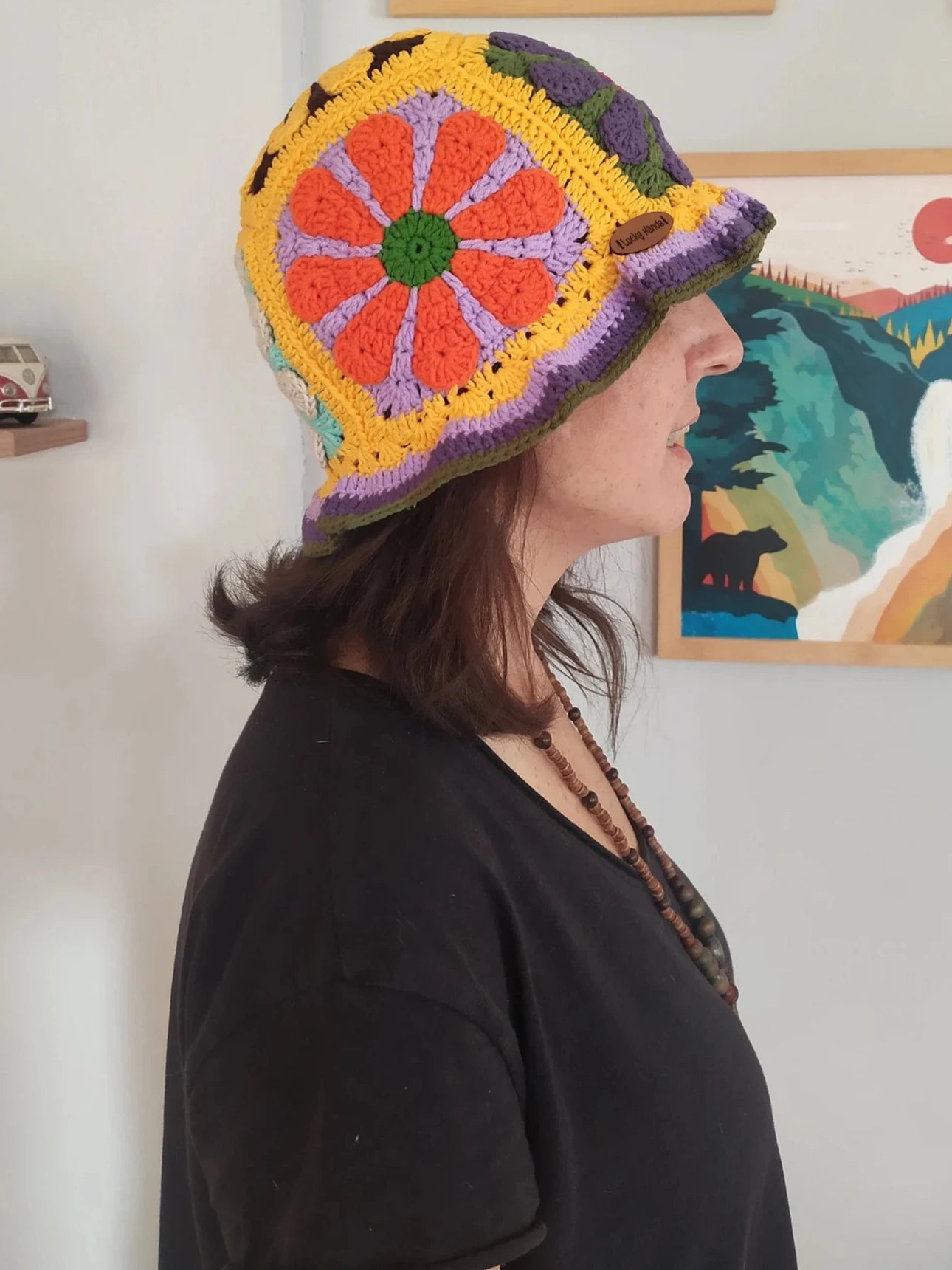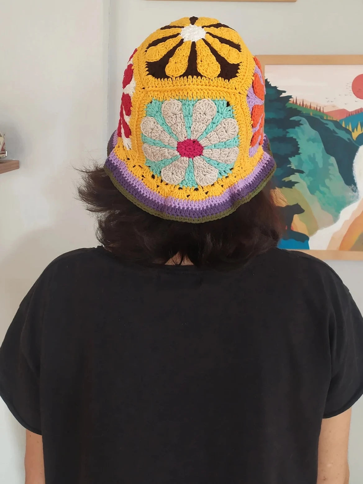 Handmade Yellow Crochet Daisy Granny Square Bucket Hat