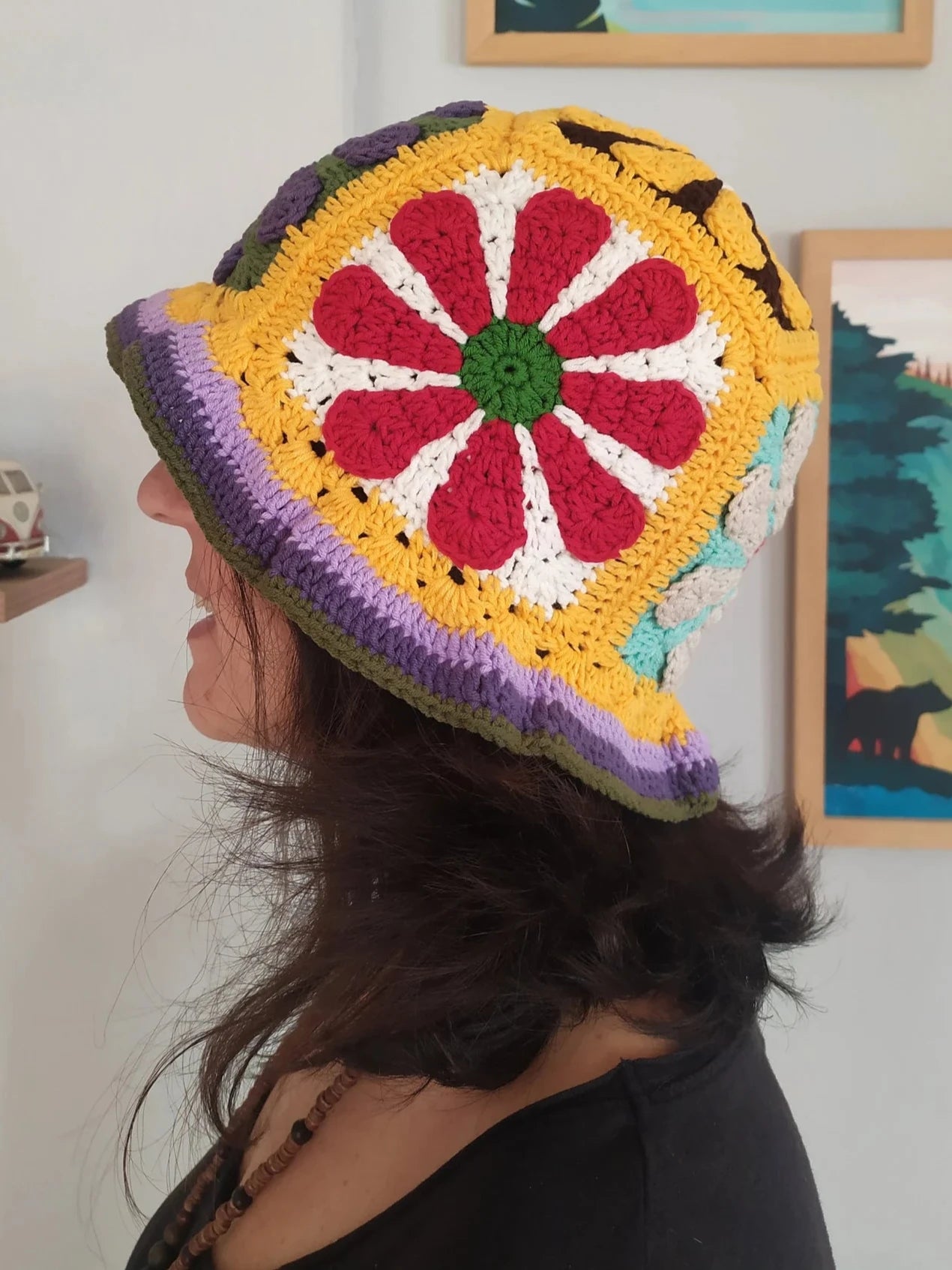 This knitted crochet daisy motif bucket hat is for you. In festivals, concerts, on the streets, in short, wherever there is life, all people will watch you.