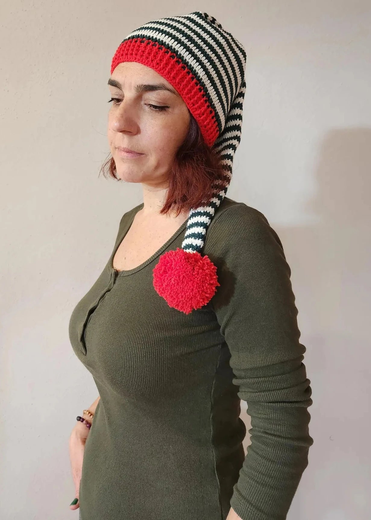Vegan Crochet Long Tale Elf Hat, Handknit Santa / Elf Hat, Crochet Christmas Winter Hat, Christmas Gifts, Christmas Santa Claus Elf Hat